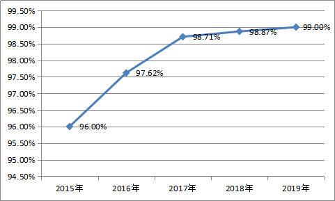 1  螺纹钢筋近5年综合合格率走势图